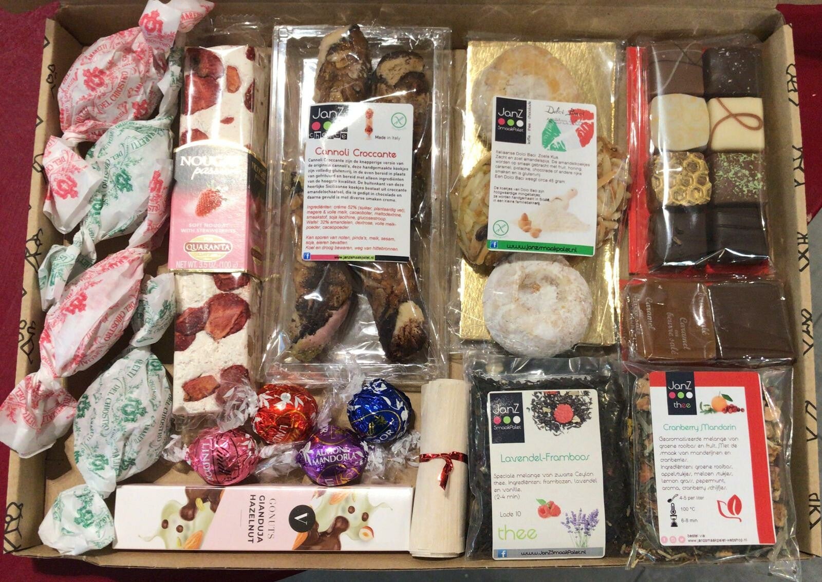Voor 2 of 4 personen. Met JanZ losse thee, theefilters en diverse zoete lekkernijen. Leuk om cadeau te geven of natuurlijk voor u zelf.